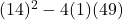 The discriminant is zero, so the quadratic equation x²+ 14x = -49 has 1 real root.