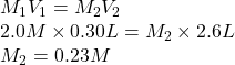 1) A student obtains 0.30 liters of 2.0 M silver nitrate solution. She dilutes the solution until it has a volume of 2.6 liters. What
