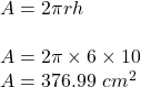 We need to find the lateral surface area of the cylinder of radius 6 cm and height of 10 cm.