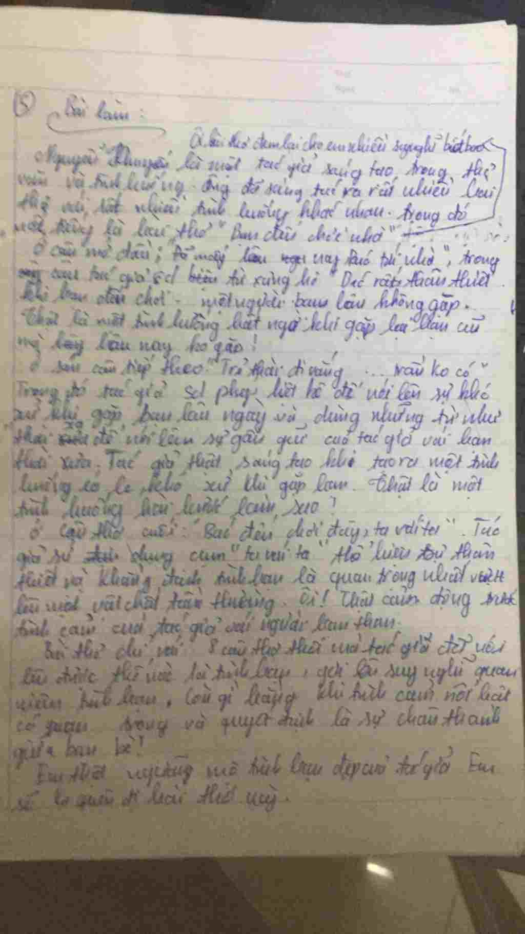60 điểm mấy ông nhá Tui trả lời câu hỏi từ hôm qua tới giờ chỉ để cho thời khắc này: (Tự làm nhé đừng sao chép mạng) Phát biểu cảm nghĩ về bài thơ “Bạ