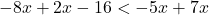 -8x + 2x -16 < -5x + 7x