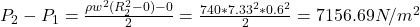 b) The difference between the pressures at the center and the edge of the bottom surface is 7156.69 N/m²