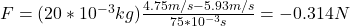 m: mass of the ball = 20g = 20*10^-3 kg
