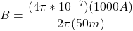 Thus, the magnetic field 50m below the transmission line is 4 micro Tesla.