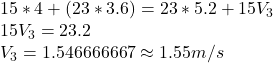 A block of mass 15 kg is sliding along the ice at a constant speed of 4.0 m/s. Just ahead of it is a block of mass 23 kg sliding in the same direction at a constant speed of 3.6 m/s. When the two blocks collide, the 23 kg block travels at a new speed of 5.2 m/s. What is the new speed of the 15 kg block?