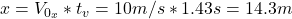 Therefore, the distance reached is 14.3 m.
