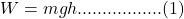 where m is the mass, g is acceleration due to gravity taken as