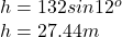 Since the length of the hill is 132m and it is inclined at 12 degrees to the horizontal, the height is thus given as follows;