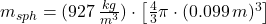 A hollow sphere of inner radius 8.69 cm and outer radius 9.99 cm floats half-submerged in a liquid of density 927.00 kg/m3. (a) What is the mass of the sphere? (b) Calculate the density of the material of which the sphere is made.