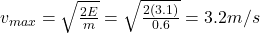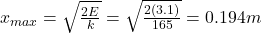 A horizontal spring-mass system has low friction, spring stiffness 165 N/m, and mass 0.6 kg. The system is released with an initial compress