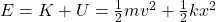 As the system oscillates back and forth, its total mechanical energy (sum of elastic potential energy and kinetic energy) will remain conserved (since we consider friction negligible). The elastic potential energy at any point is given by: