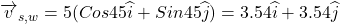 velocity of salmon with respect to water, v(s,w) = 5 mi/h at N 45° E