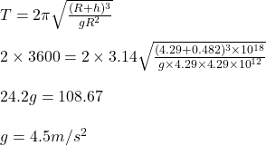 A satellite has a mass of 6463 kg and is in a circular orbit 4.82 × 105 m above the surface of a planet. The period of the orbit is 2.0 hours. The radius of the planet is 4.29 × 106 m. What would be the true weight of the satellite if it were at rest on the planet’s surface?