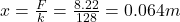 a toy dart gun has a spring with k=128 N/m. a kid pulls back on the spring with a 8.22 N force. how far does it stretch?(unit=m) PLEASE HELP