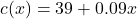 A truck rental company rents a moving truck One Day by charging $39 + 0.09 per mile write a linear equation that relates the cost c in dollars of renting the truck to the number x of miles driven and what is the cost of renting the truck if the truck is driven 160 MI