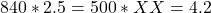A tuning fork vibrating in water with a frequency of 840 Hz produces waves that are 2.5 m long. If a tuning fork vibrating at 500 Hz produces the same type of wave in water, what will the wavelength of the waves be?