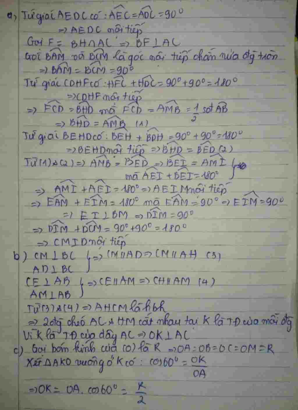 a) Chứng minh: Tứ giác AEDC và CMID nội tiếp.