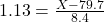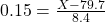 Scores on the test are normally distributed with a mean of 79.7 and a standard deviation of 8.4.