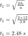 The time taken to cover 88 m with an initial velocity of 9.67 m/s is calculated as;