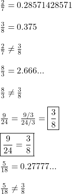 are any of these equivalent to 3/8 ? 2/7 8/3 9/24 5/18