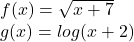 f(x) – g(x) = sqrt(x+7) – log(x+2)