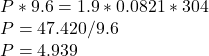 At 304 K, a 9.6 L tank contains 1.9 moles of H2 gas under an unknown pressure in atm. What is the pressure of the gas in the tank? (R = 0.08