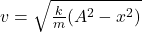 Here, v represents the speed of the object in harmonic motion, k is the springs constant, m is the mass of the object, A is the amplitude, and x is the position.