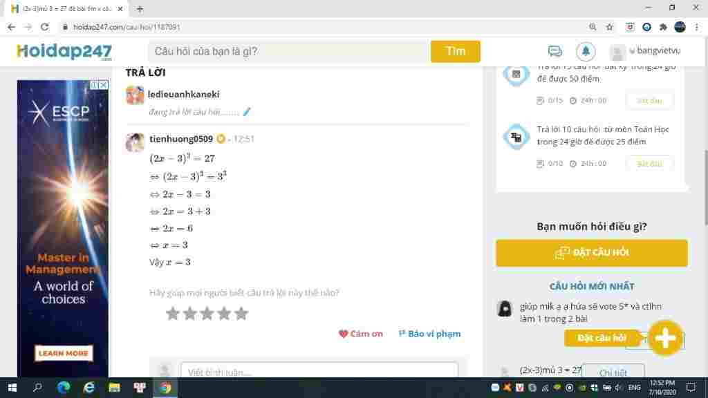 Cách viết phân số và lũy thừa to và in đậm vừa( chứ in đậm quá không đẹp) Phân số mình dùng dfrac rồi mà ko to và đẹp như các bạn ấy TRONG HOIDAP247