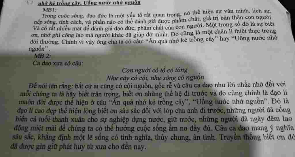 Nhân dân ta thường nhắc nhở nhau: Ăn quả nhớ kẻ trồng cây. Hãy chứng minh lời nhắc nhở đó là nét đẹp truyền thống đạo lí của dân tộc Việt Nam bằng một bài văn nghị luận ngắn.