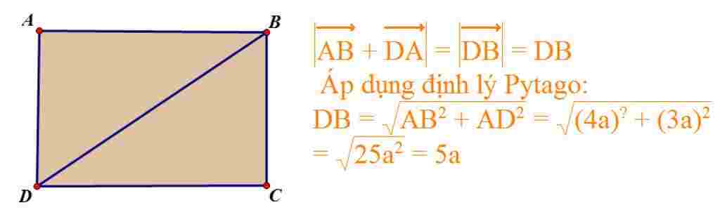 Cho hình chử nhật ABCD biết AB=4a và AD=3a thì độ dài vectơAB +vetơDA=? GIÚP dùm em và cho em xin lời giải ạ