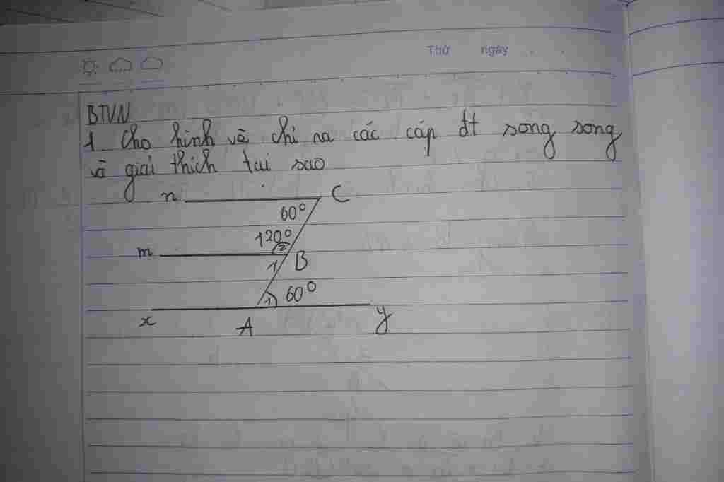 `=> \hat{B_1} = \hat{A_1} = 60^0` mà nằm ở vị trí so le trong