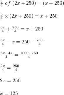 Amount won by winner = x + 250 = 125 + 250 = £375