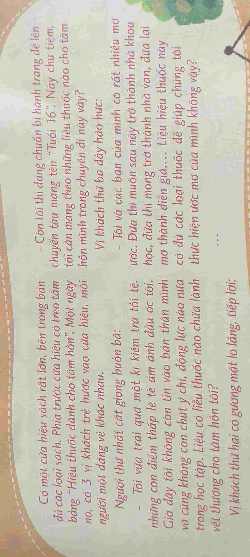 Đề 1: Em hãy tưởng tượng mình là chủ của “Hiệu thuốc dành cho tâm hôn”để kể tiếp câu chuyện trên.