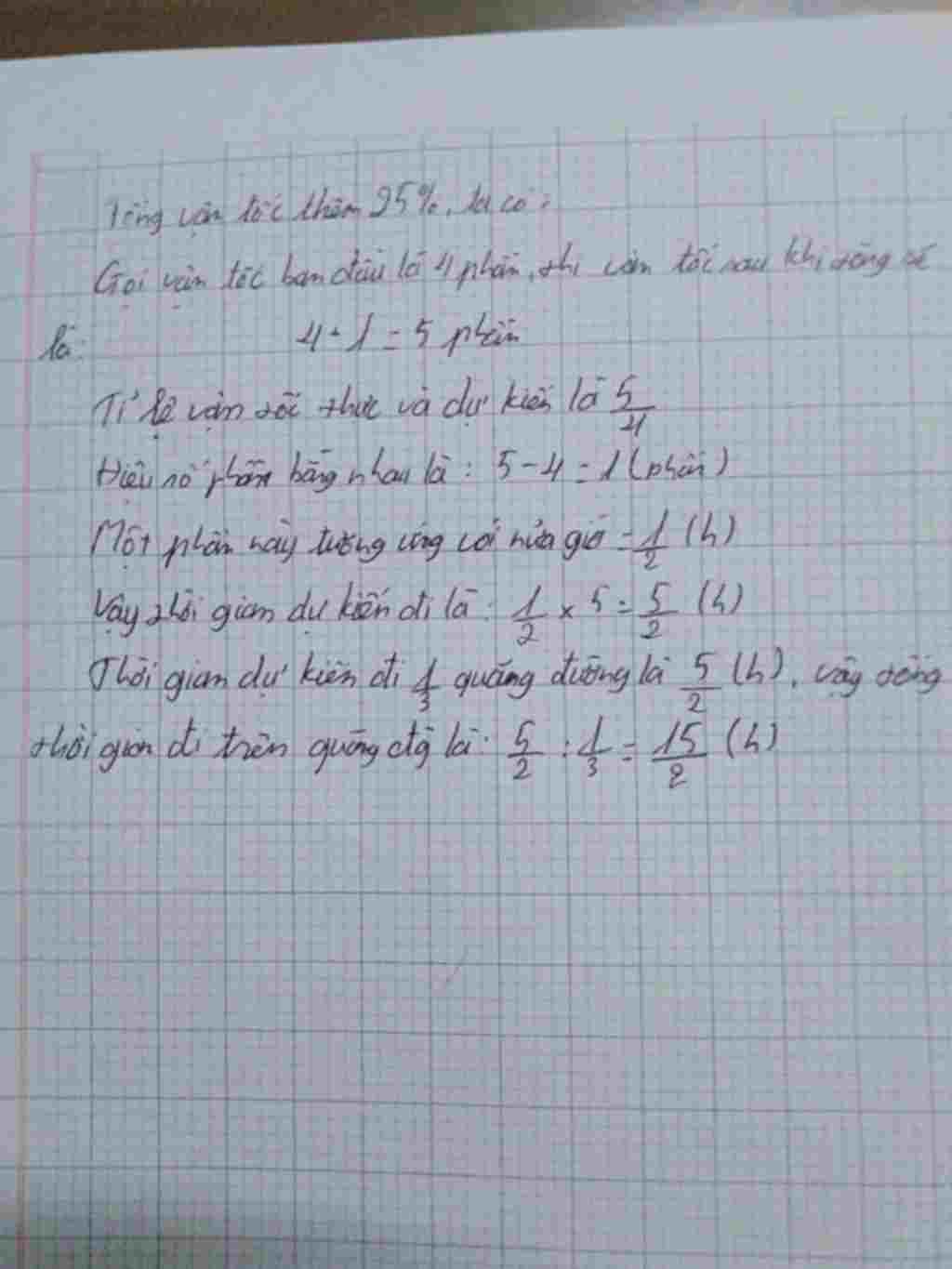 Tỉ lệ vận tốc thực tế và và dự kiến là : 5/4