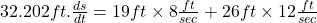 Distance Between Two Cars A car leaves an intersection traveling west. Its position 4 sec later is 19 ft from the intersection. At the same time, another car leaves the same intersection heading north so that its position 4 sec later is 26 ft from the intersection. If the speeds of the cars at that instant of time are 8 ft/sec and 12 ft/sec, respectively, find the rate at which the distance between the two cars is changing. (Round your answer to one decimal place.)