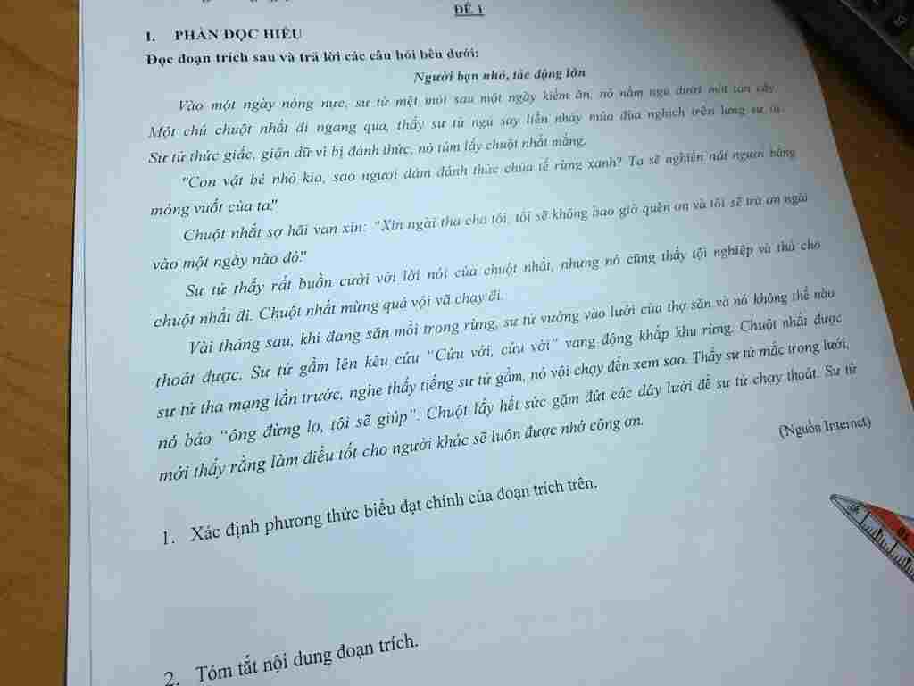 Đọc đoạn trích sau và trả lời các câu hỏi bên dưới: Người bạn nhỏ, tác động lớn Vào một ngày nóng nực, sự tử mệt mỏi sau một ngày kiếm ăn, nó nằm ngủ