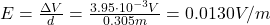 Therefore, the maximum electric field created is 0.0130 V/m.