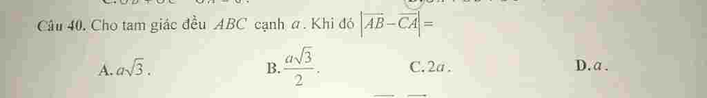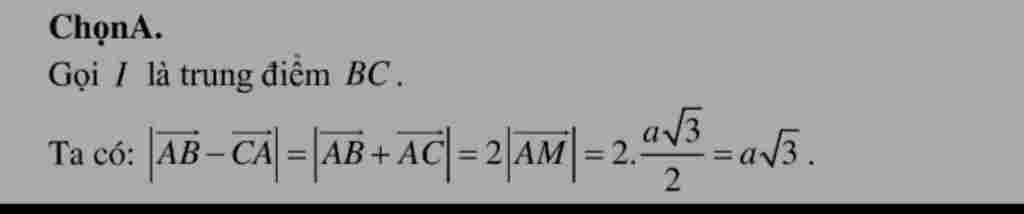 $|\vec{AB}-\vec{CA}|=|\vec{AB}+\vec{AC}|=2|\vec{BI}|$ (I là trung điểm BC, theo quy tắc hình bình hành).