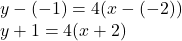Enter an equation in point-slope form for the line. Slope is 4 and (-2,-1) is on the line. The equation of the line in point slo
