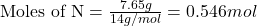 Calculating the mole fraction of each element by dividing the calculated moles by the least calculated number of moles that is 0.546 moles