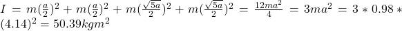 Distance from top right mass = x = √5 (a/2)