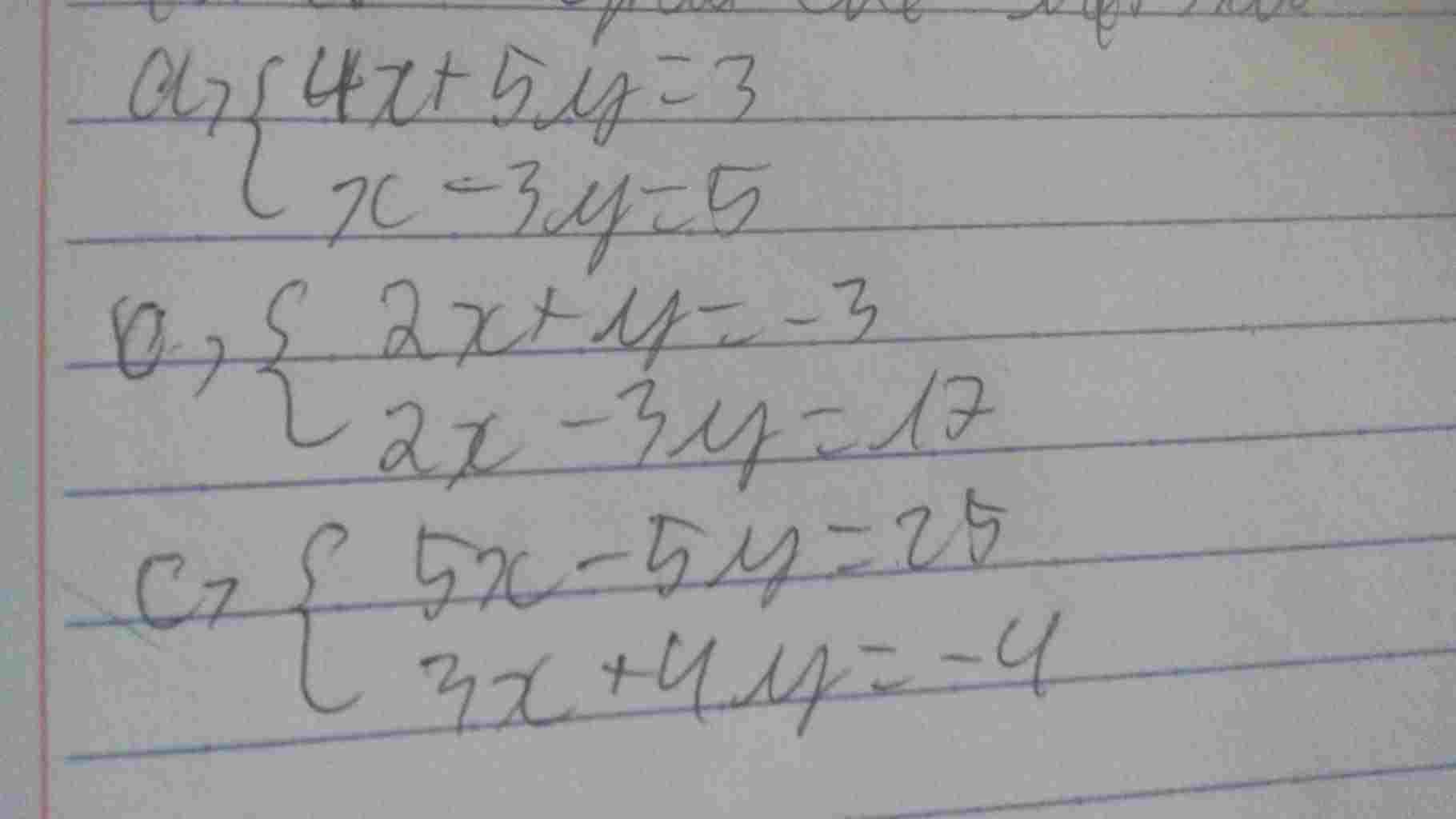 $a$) $\left\{\begin{matrix}4x+5y=3& \\x-3y=5&\end{matrix}\right.$