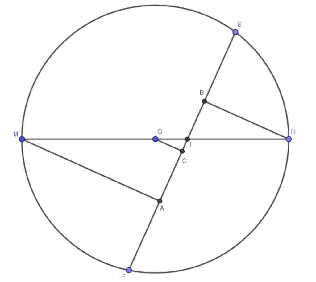 $\Rightarrow \dfrac{IC}{AC} = \dfrac{IO}{OM}$ $(2)$
