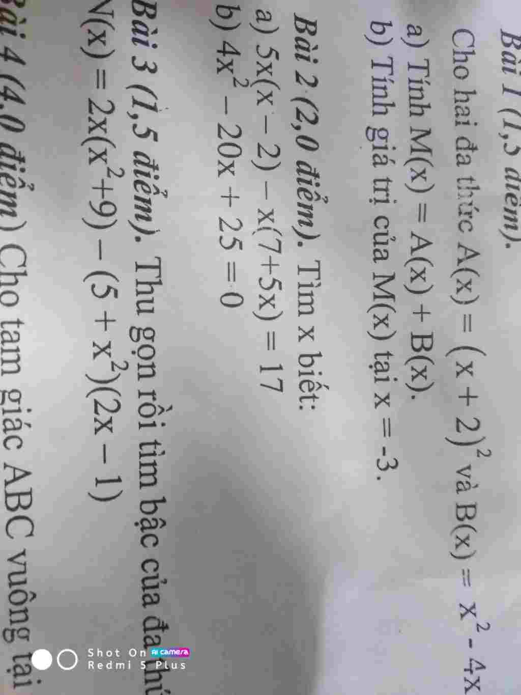 $\text{Vậy bậc của đa thức N(x) là 2 }$