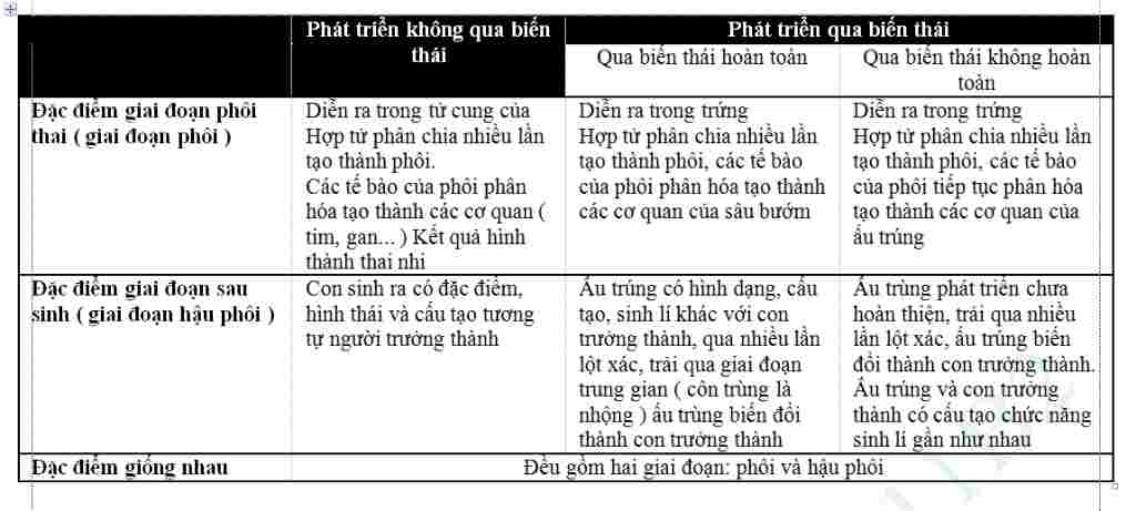 giuos mình với mọi người ơi Hãy so sánh quá trình phát triển ở động vật không trải qua biến thái và phát triển ở động vật trải qua biến thái hoàn toàn