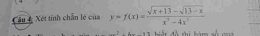 = \dfrac{{\sqrt {13 + x} – \sqrt {13 – x} }}{{{x^5} – 4{x^3}}} = f\left( x \right)