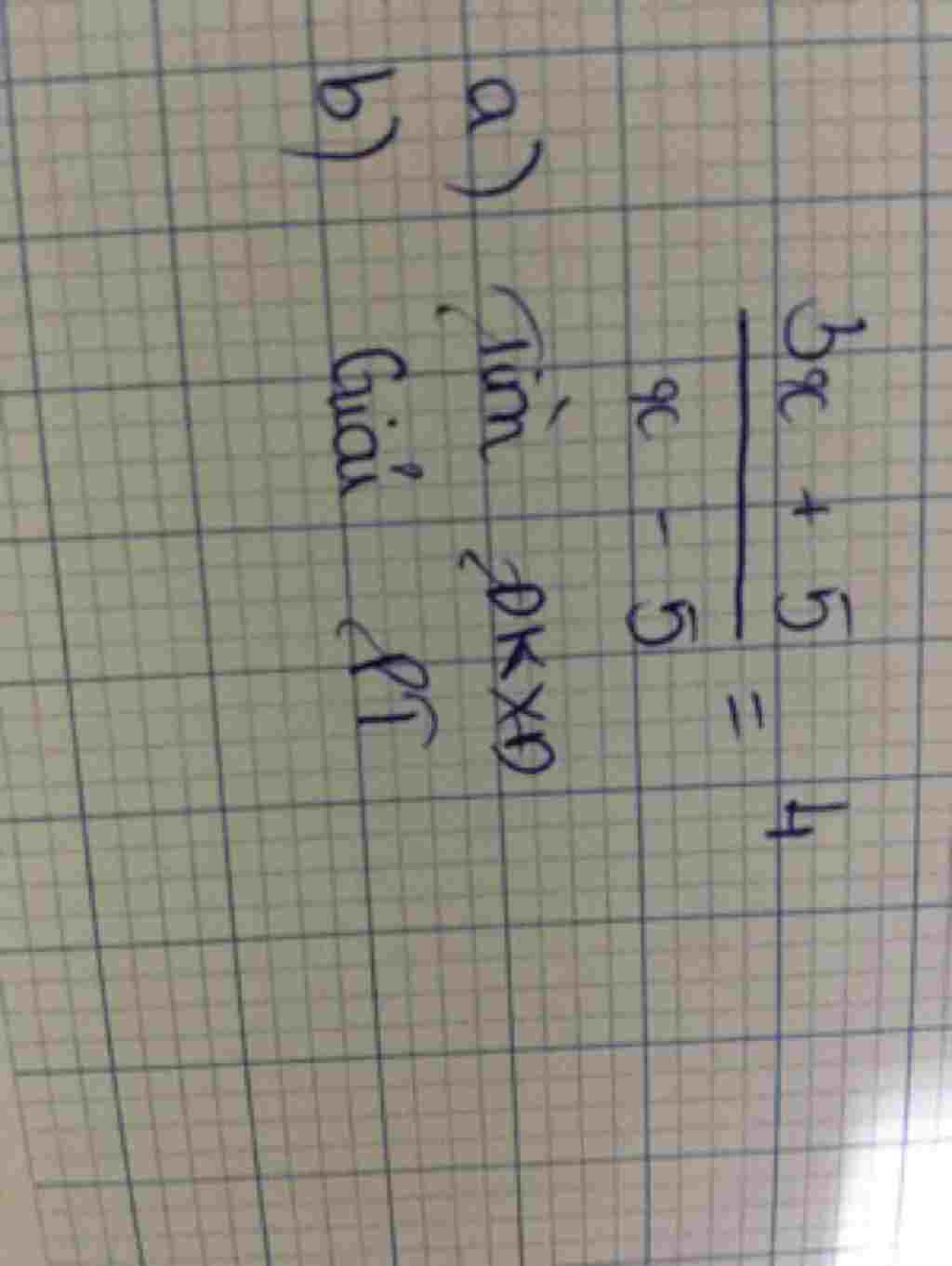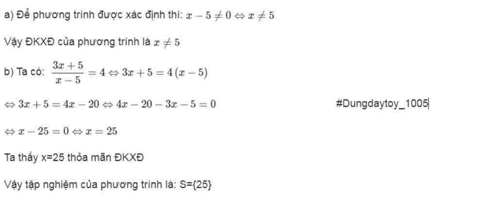`<=>`$\dfrac{3x+5}{x-5}=$ $\dfrac{4(x-5)}{x-5}$