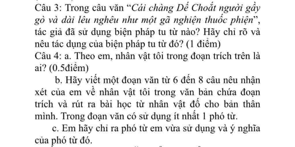 – Tác giả sử dụng biện pháp tu từ trên để mô tả ngoại hình của cậu Dế Choắt là rất là ốm yếu, gầy gò và xấu xí