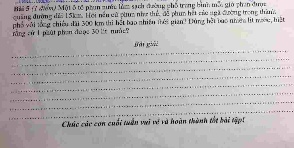 Để phun hết các ngả đường trong thành phố cần số lít nước là: