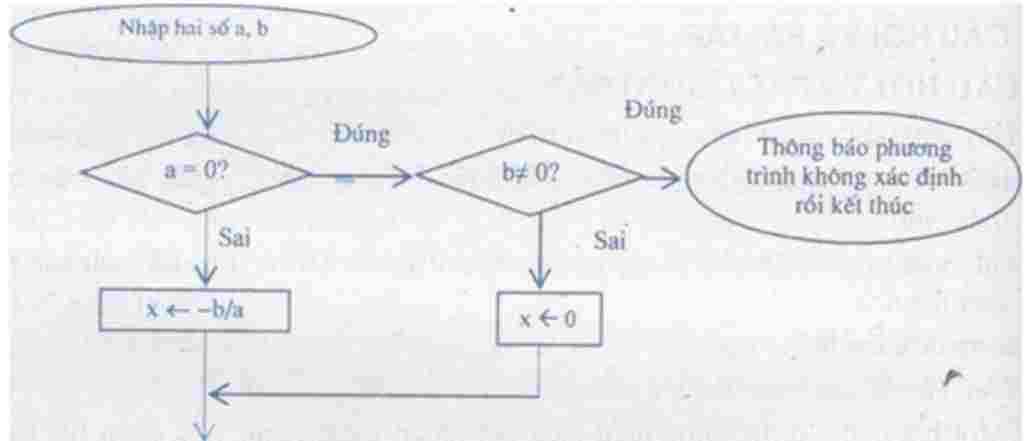 Bước 2.1. Nếu b ≠0 thì thông báo phương trình vô định, rồi kết thúc;